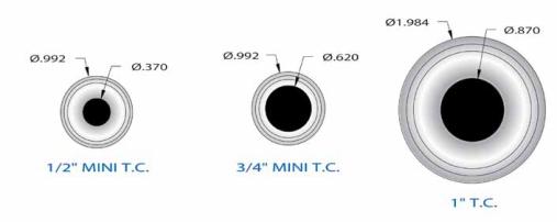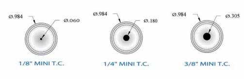 diameter is the same for 1/8”, 1/4”, 3/8”, 1/2” and the 3/4” (mini) styles. For your convenience and ordering accuracy,