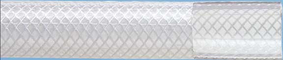 Clear PVC tube with braided reinforcement.